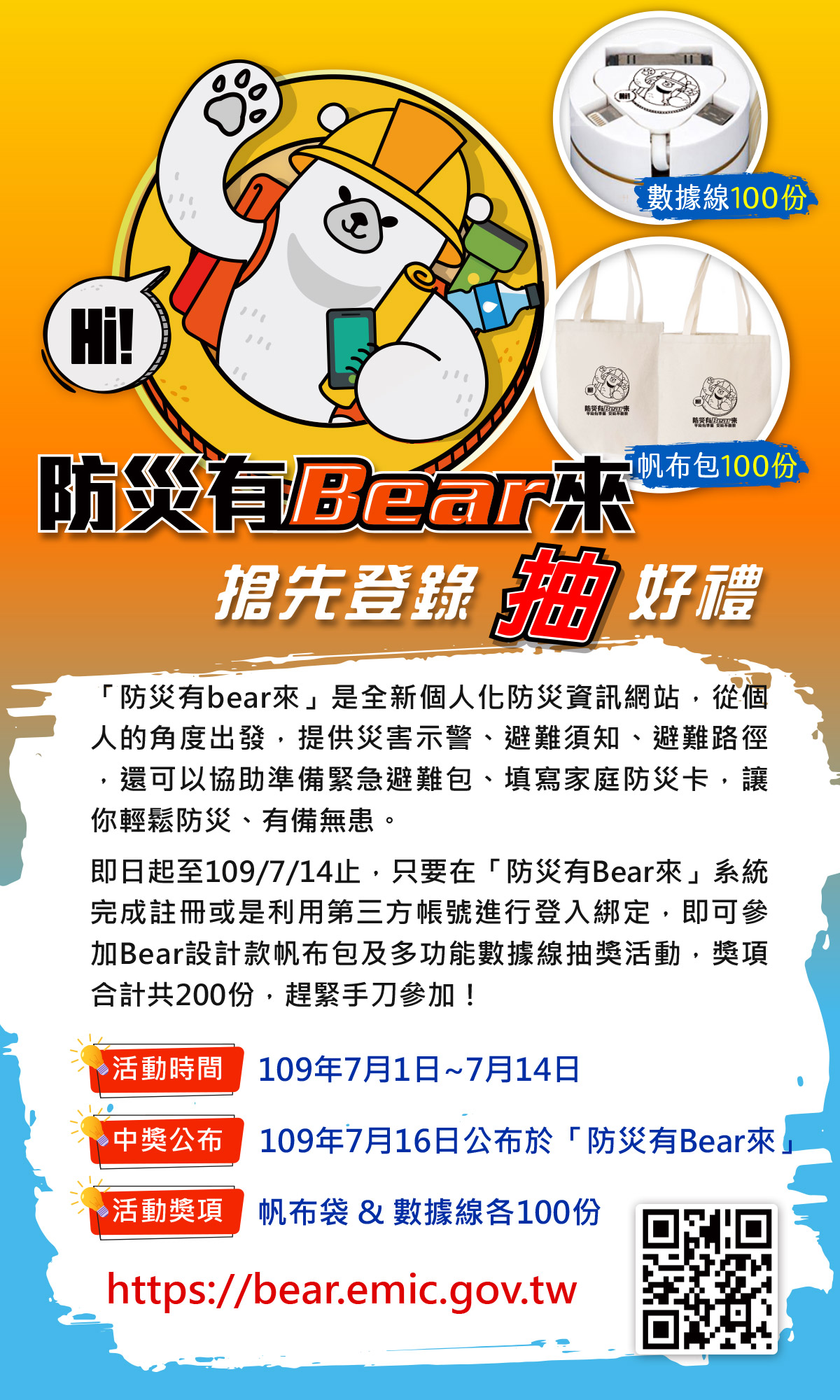 (四)活動獎項: Bear 設計款帆布袋及多功能數據線各 100 份。