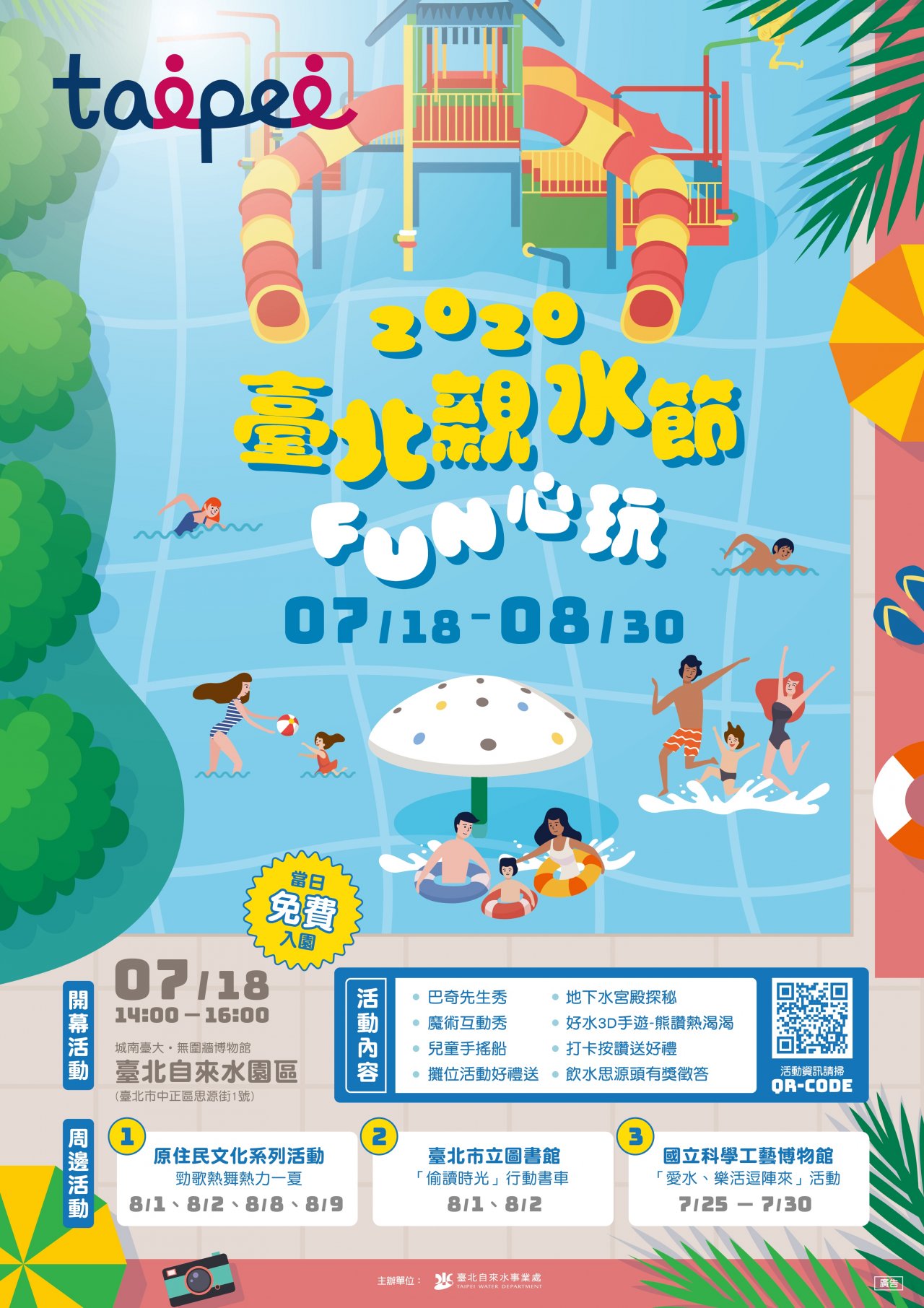 2020 臺北親水節自 109 年 7 月 18 日至 109 年 8 月 30 日,