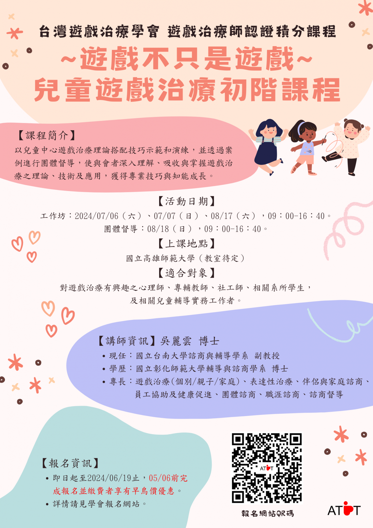 一、 2024 台灣遊戲治療師認證積分課程『遊戲不只是遊戲』兒童遊戲治療入門課程活動及時間。