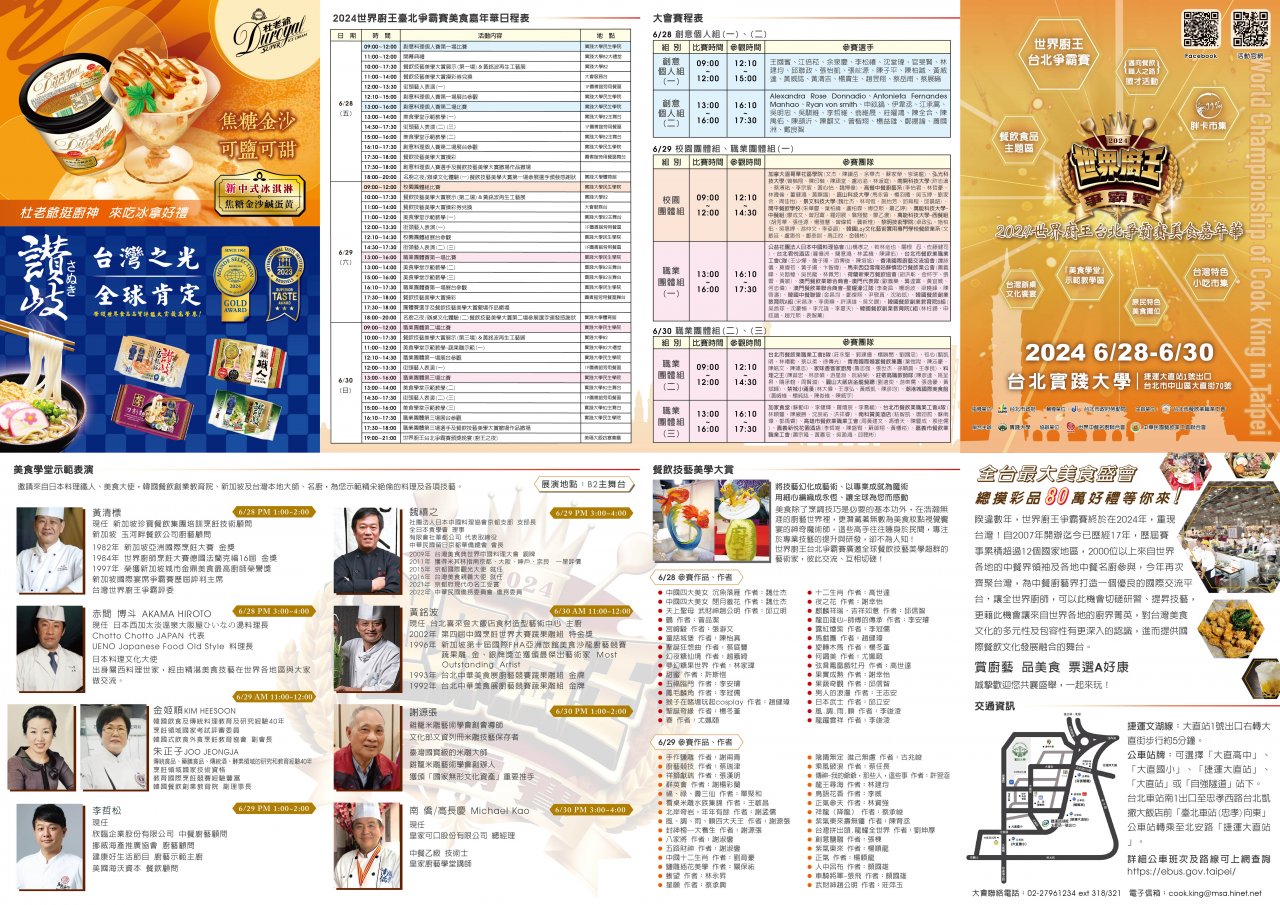 二、 | 為提升勞動者職業技能拓展國際視野,臺北市政府勞動局 113 年度補助臺北市餐飲業職業工會辦理「2024 世界廚王爭霸賽暨美食嘉年華」,該活動訂於 113 年 6 月 28 日至 6 月 30 日於實踐大學舉辦。 |