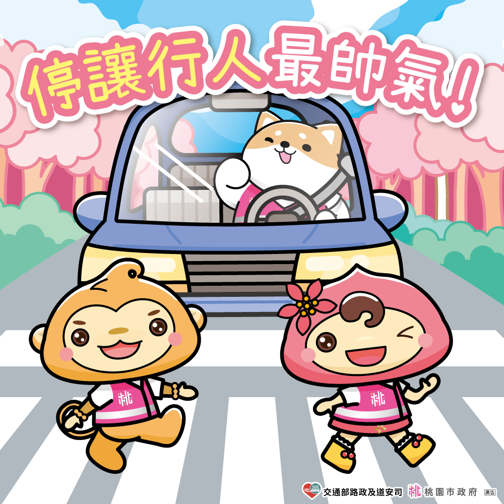 【114年11月交通安全宣導】騎車戴安全帽,平安一路到老。不搶快不闖燈,安全騎車最輕鬆。減速慢行多禮讓,幸福平安每一趟。交通部與桃園市政府關心您!