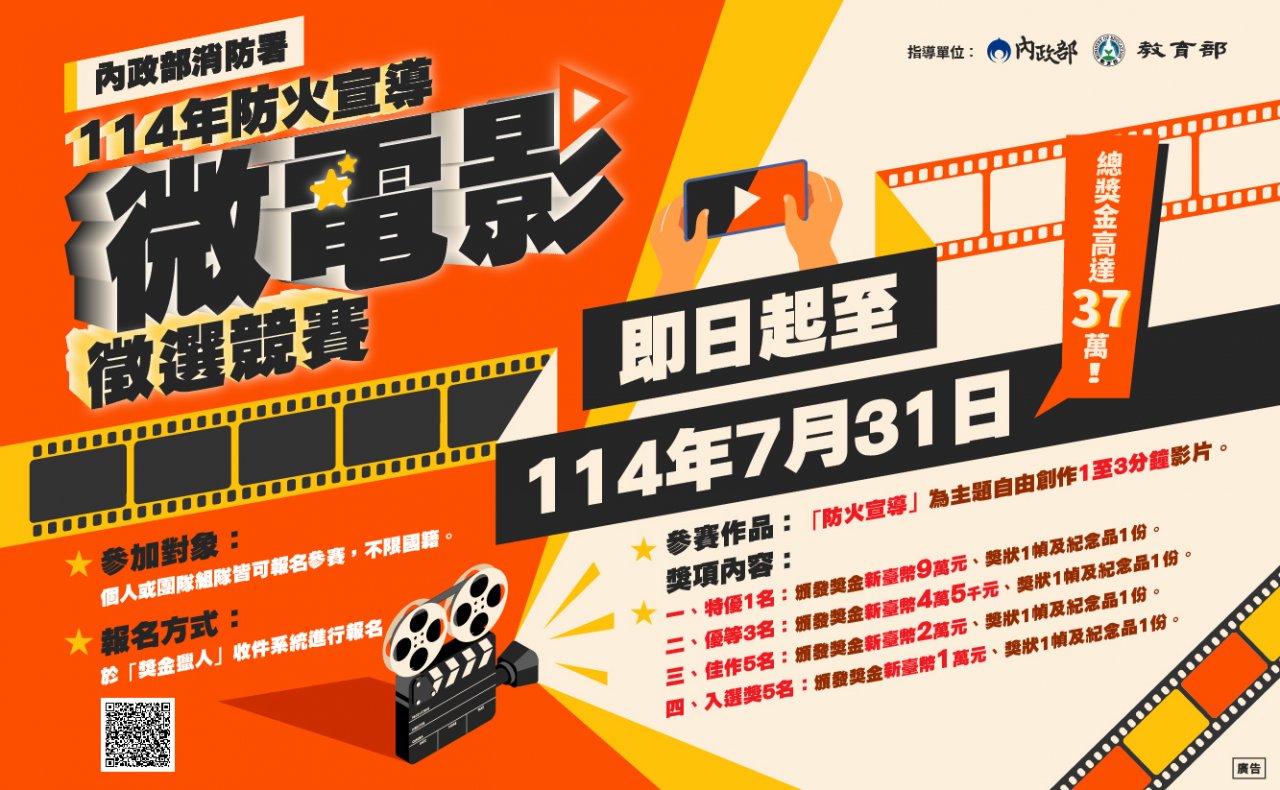 轉知內政部消防署「114年防火宣導微電影徵選競賽活動辦法」